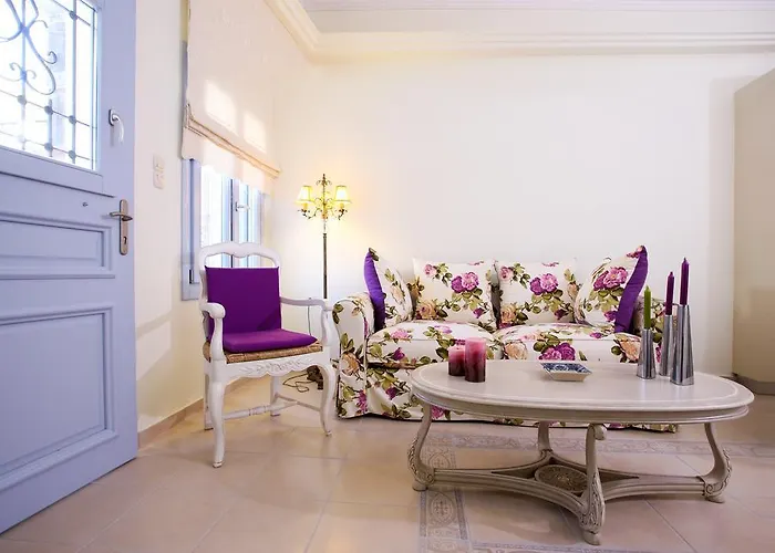 Aegean Diamonds Boutique Villas ligt op afstand van 3 km van Agios Ioannis Chapel en nodigt gasten uit om te ontspannen op een veranda.